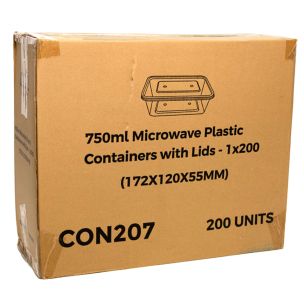 CON207750ml Microwave Plastic Containers with Lids - 1x200