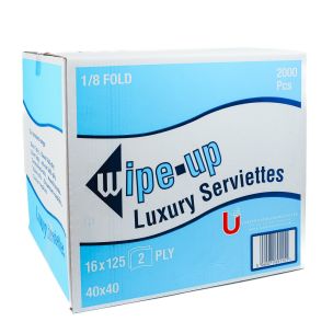 Home >Hygiene >Paper Hygiene >Serviettes >Wipe-Up Luxury Fold White Serviettes (2Ply & 40cm & 1/8 Fold) 16x125 HYG164
