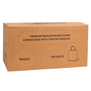 New Products - Introductory Offer ends 01/01 Home >Packaging >Bags >Brown Bags >Premium Medium Brown Paper Carrier Bags with Twisted Handles 1x100 BAG222