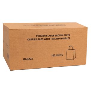 New Products - Introductory Offer ends 01/01 Home >Packaging >Bags >Brown Bags >Premium Large Brown Paper Carrier Bags with Twisted Handles 1x100 BAG223