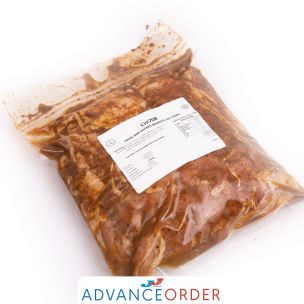 Restaurant-grade, fresh, halal, juicy boneless chicken legs. Pre-cut and marinated for convenience, and to minimise waste. Prepared using an authentic jerk marinade of onion, nutmeg, garlic and ginger powders, thyme, allspice and black pepper; resulting in a consistently delicious taste for your customers, every time. Vacuum packed for maximum flavour and quality. Simply cut open the bag and grill, oven cook, BBQ or air fry.Sorry, this product is currently not available at London-Enfield branch