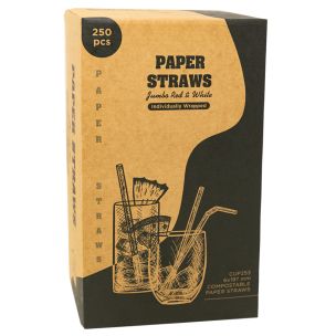 Home >Packaging >Bio Packaging >Bio Cups & Accessories >Individually Wrapped Red & White Compostable Paper Straws (197x6mm) 1x250 CUP253