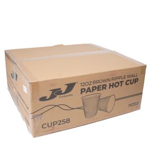 JJ 12oz Brown Ripple Wall Paper Hot Cup (Lid Ref CUP265/CUP270) 1x250