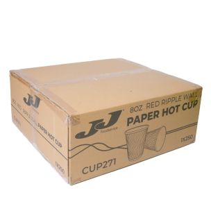 JJ 8oz Red Ripple Wall Paper Hot Cup (Lid Ref CUP264/CUP269) 1x250