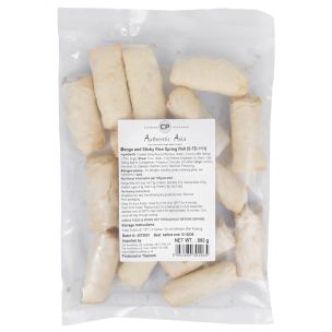 Sweet spring rolls filled with fragrant sticky rice and real mango purée, wrapped in a crisp golden pastry. A unique dessert option for your menus. Cook from frozen and serve warm with ice cream. Each spring roll weighs 55g, with 16 spring rolls per pack.Collection: