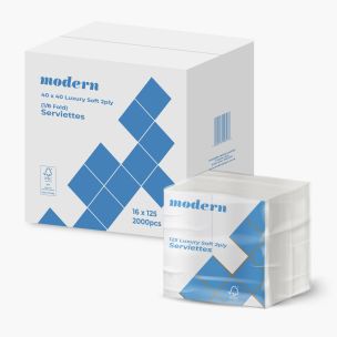Home >Hygiene >Paper Hygiene >Serviettes >Modern Paper White Serviettes 2ply 40cm 1/8 Fold 16x125 HYG688