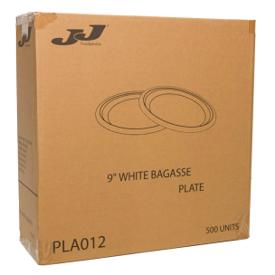 PLA012JJ 9" White Bagasse Plate (225x225x20mm) 1x500