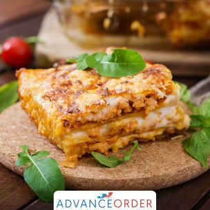 Fresh, made-to-order, meat lasagna. A generously filled tray, with layers of veal, beef, tomato sauce, bechamel and cheese. Simply cook in the oven, portion and serve. A premium, convenient option for restaurants, brasseries and cafes to serve a flavoursome lunch or dinner, or ideal for home use when entertaining guests.Collection: