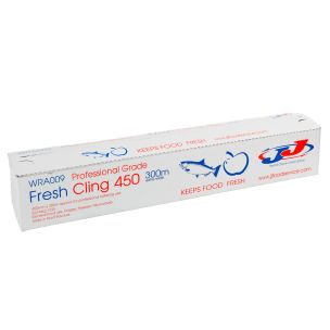 Professional grade, large cling film roll, ideal for foodservice and catering. A kitchen essential for wrapping food, to protect and preserve ingredients. This lengthy roll ensures long-lasting use, while offering great value for money.
