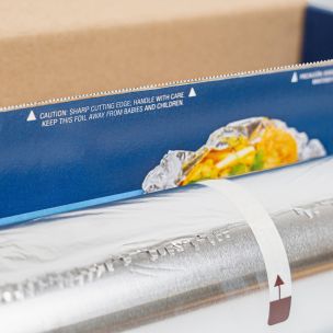Premium aluminium kitchen foil suitable for cooking, baking, grilling, and food storage. The strong and flexible foil ensures reliable coverage and excellent heat conductivity. Supplied with a durable metal cutter for smooth, precise tearing and easy handling in professional and home kitchens.N/A- Nutrition Values